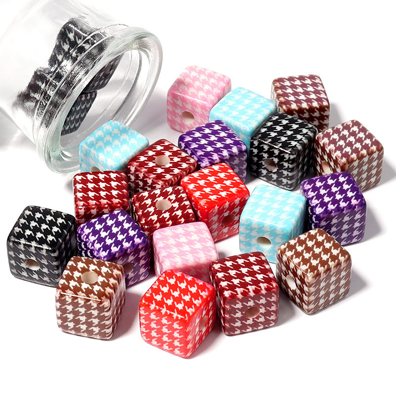 14mmアクリル千鳥格プリントブロックdiy携帯電話チェーン車のストラップビーズ材料アクセサリー部品