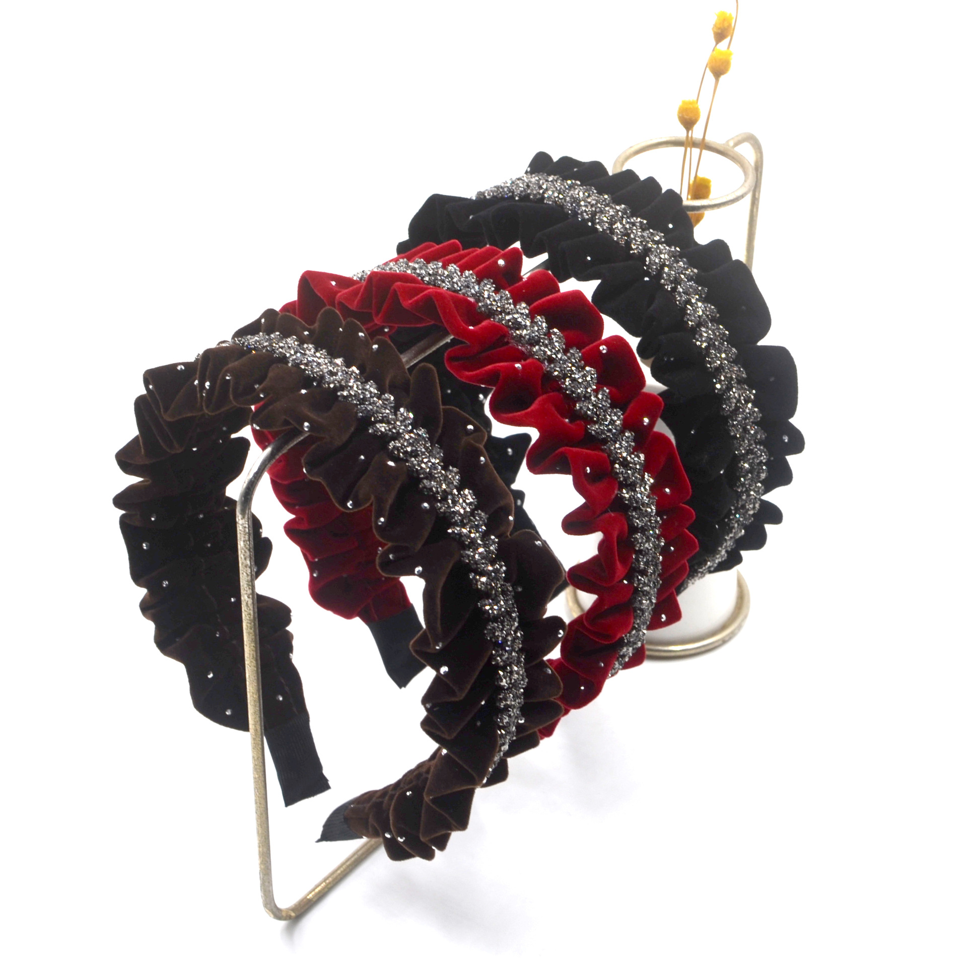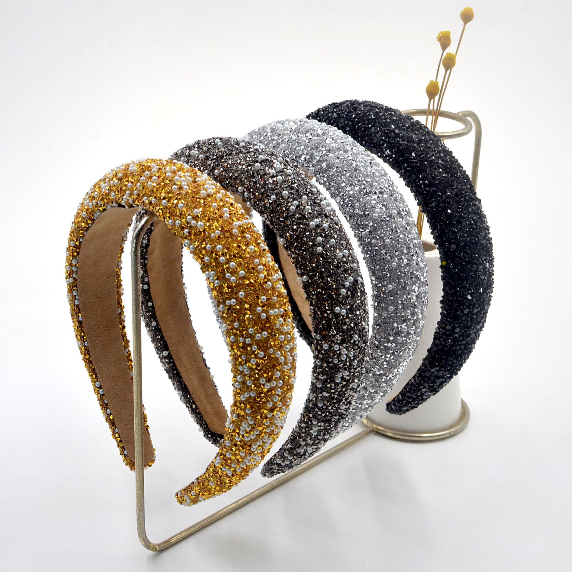 韓国東大門ネット赤スター水晶真珠水ドリルカチューシャかわいいネット赤金ベルベットカチューシャ卸売り