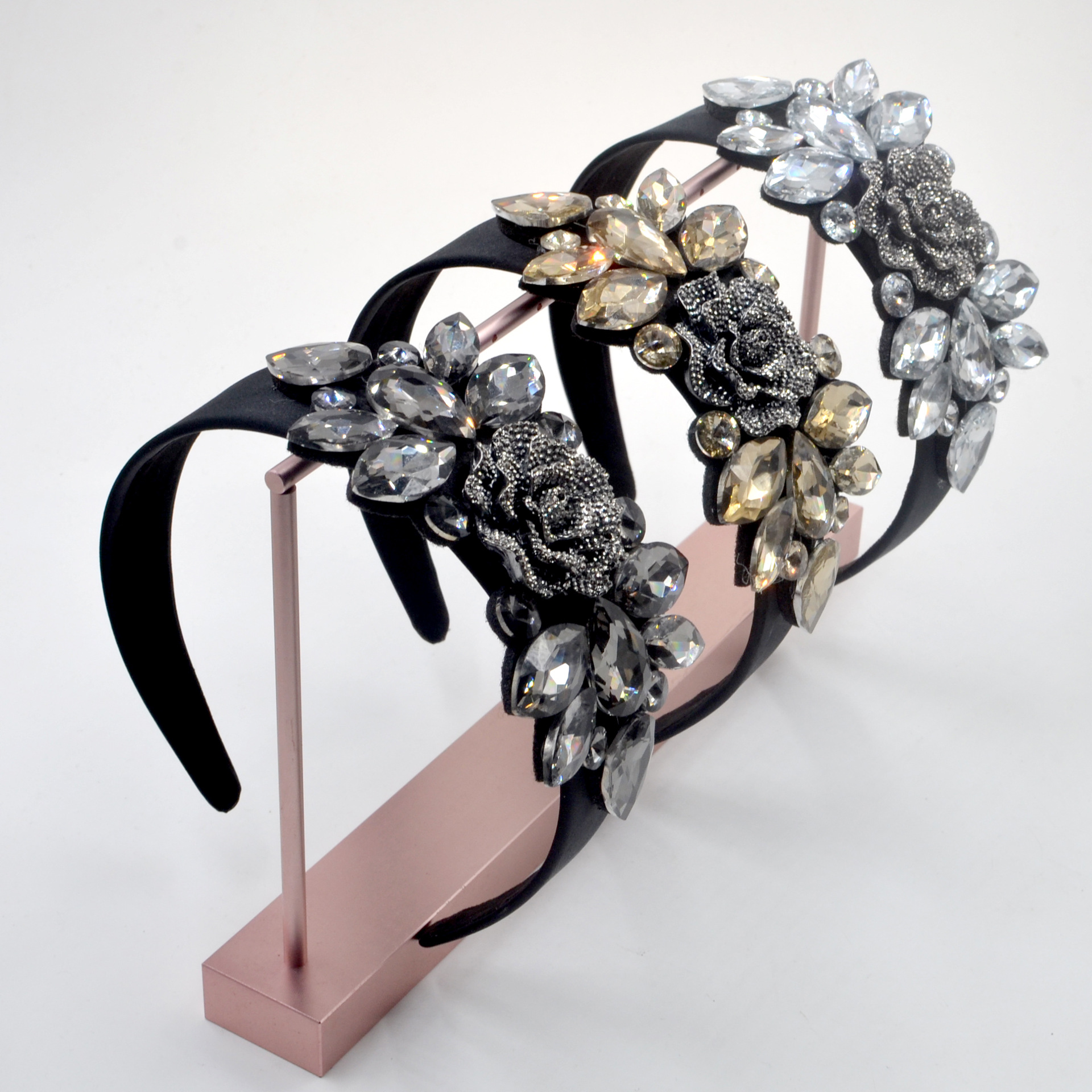 国境を越えた欧米の贅沢な重工はガラスドリルの花のカチューシャの女性バロックのレトロなカチューシャの広い髪飾りをつけている