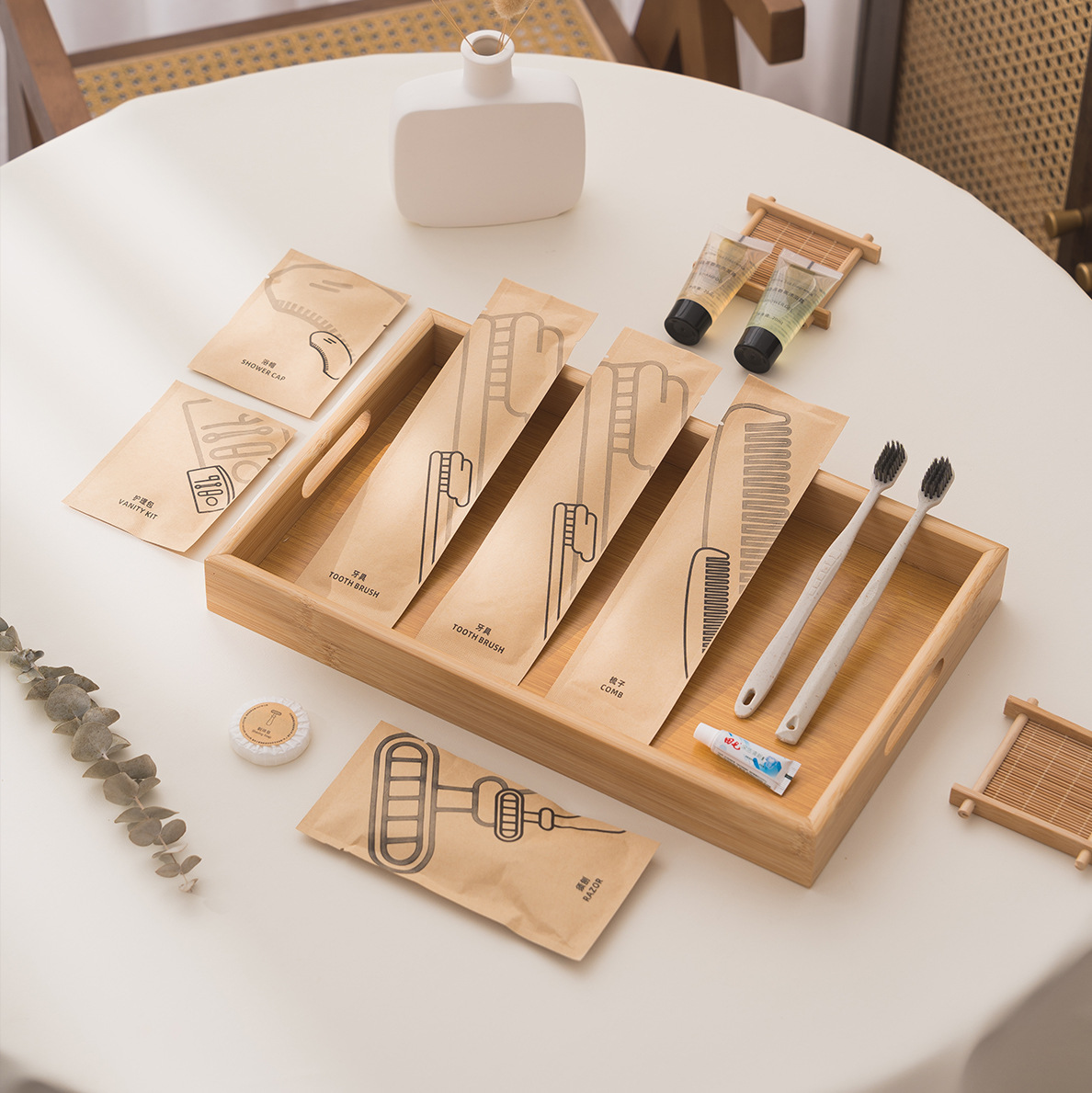 ドロップシッピングクラフト紙袋使い捨てトイレタリーセットホテル B&B 歯ブラシ歯磨き粉ホテル用品カスタマイズ