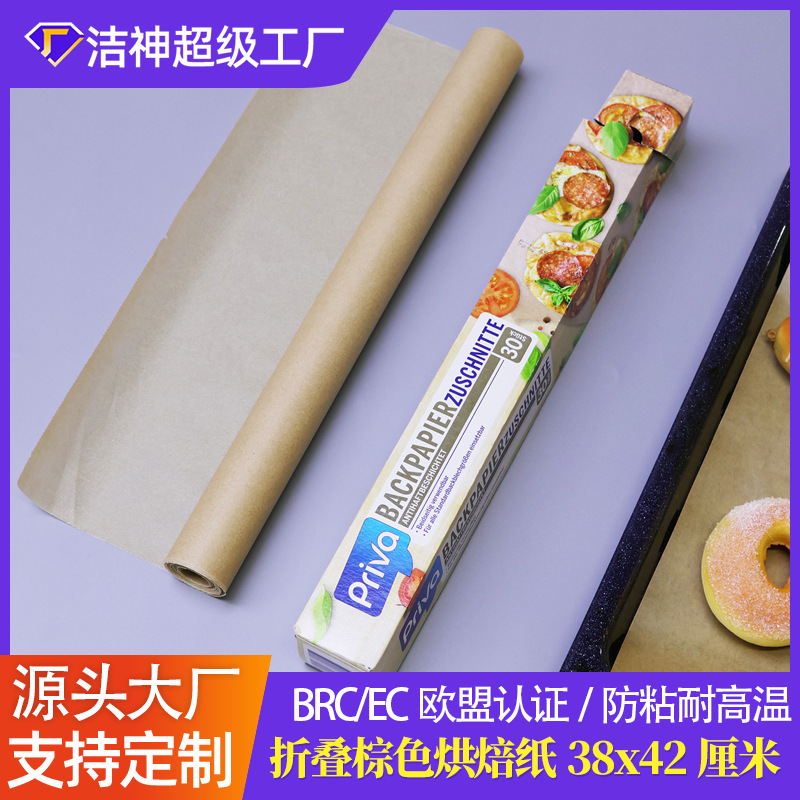 カスタマイズ可能 食品の粘着防止 折りたたみボックス 内巻き ブラウン ベーキングペーパー ペーパーカット 38x42cm 30枚
