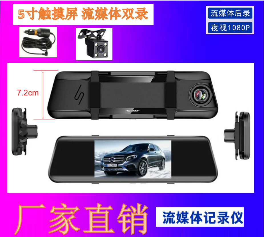 YC-D10ストリーミングドライブレコーダ高精細バックミラー二重レンズバック映像車載5インチクロスボーダー