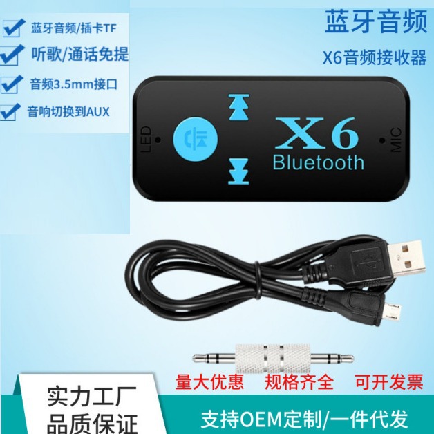 車載bluetoothオーディオ受信機bluetoothハンズフリー通話X6 bluetoothアダプタtfカード携帯プレーヤー