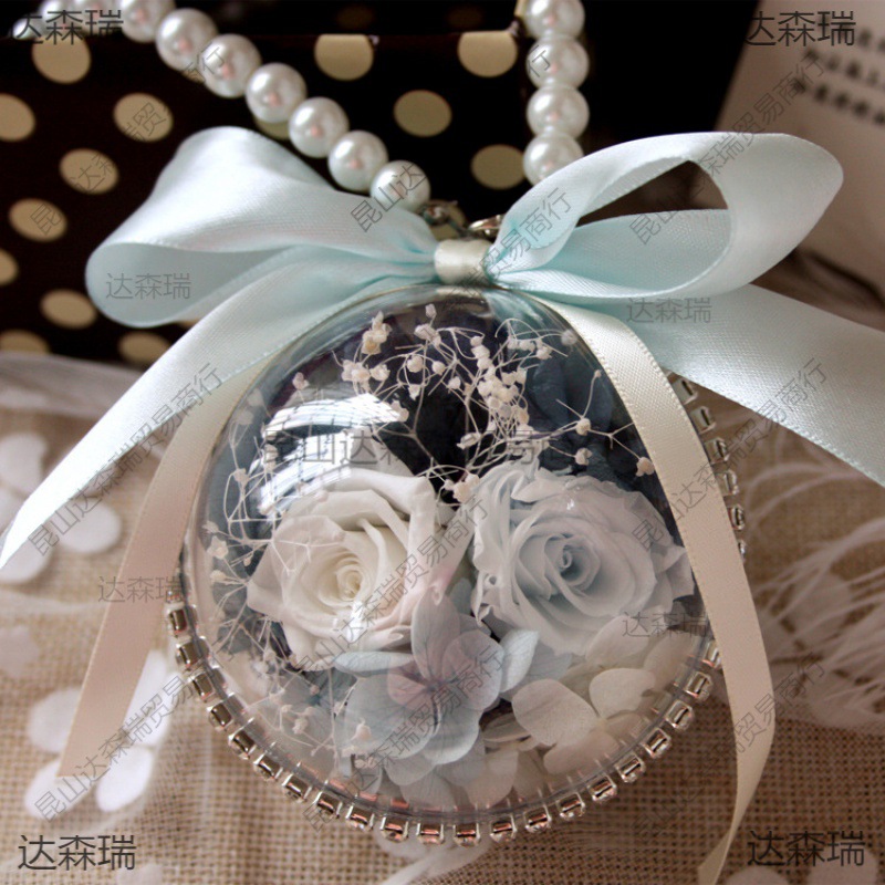 七夕の永生花の車はアクリルボールの透明なボールの真珠のチェーンの車のキーホルダーのペンダントのdiy材料のカバンを掛けます。