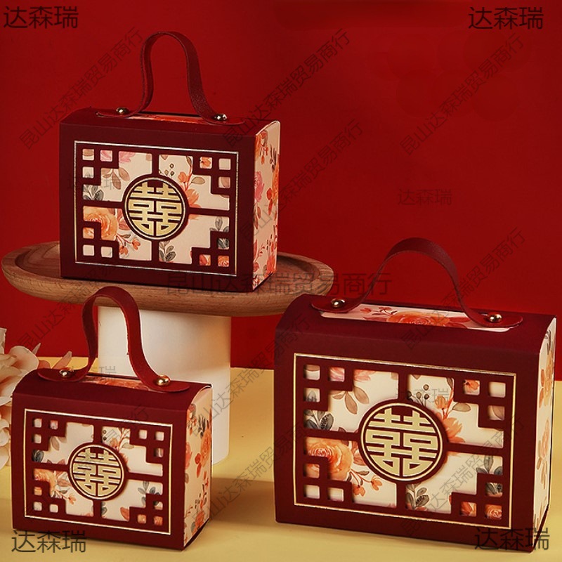 喜糖の箱の高級感のins風の卸売りの新型の結婚式の手提げの喜糖の袋の中国式の喜糖の箱の空の箱の卸売り