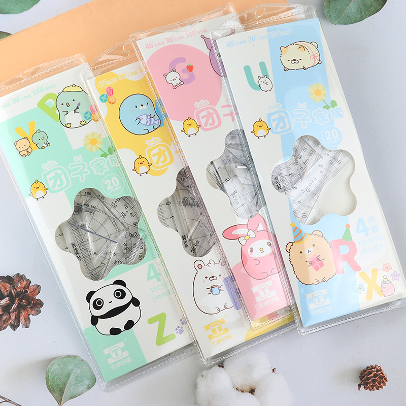 学生アニメかわいいベアーの定規20cm多機能定規子供学習セット三角板4点セット定規