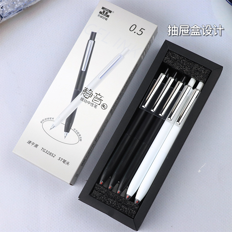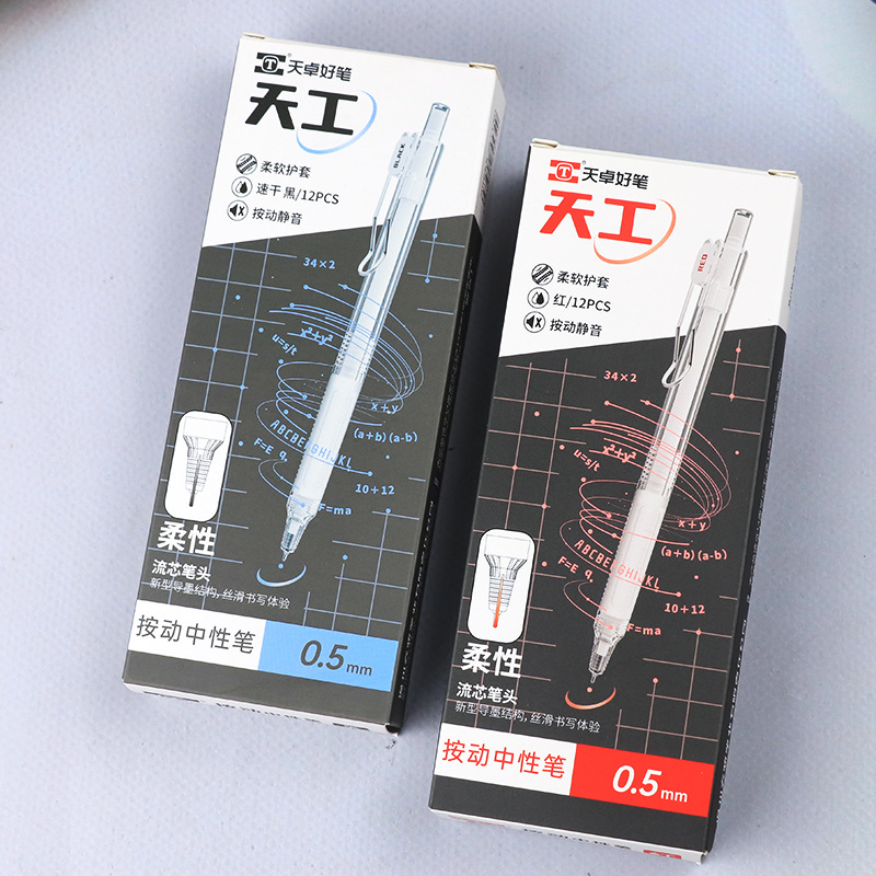 天卓33210天工シリーズ静音押し中性ペン柔軟筆頭速乾黒0.5柔軟シース学生