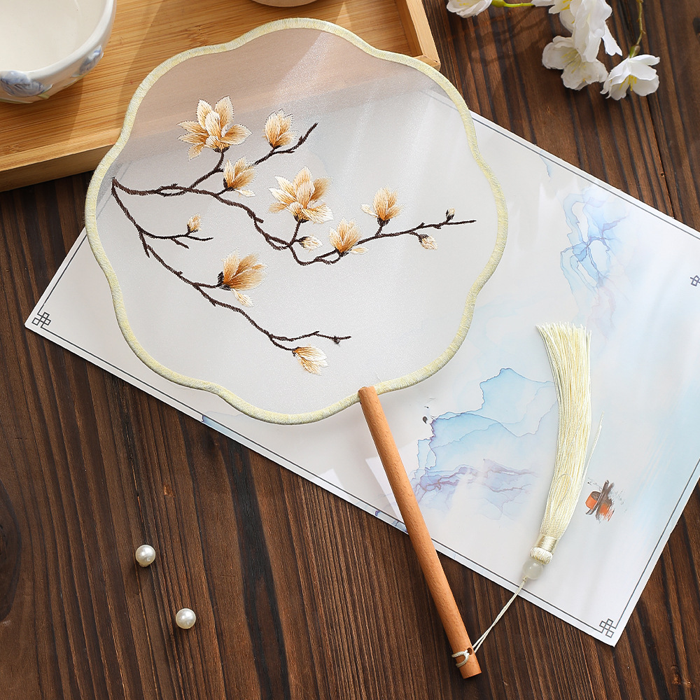 古代スタイルの扇子、子供用扇子、夏のタッセルダンス扇子、女性の古代衣装、漢服、チャイナドレス、刺繍入りの小さな扇子、中国風