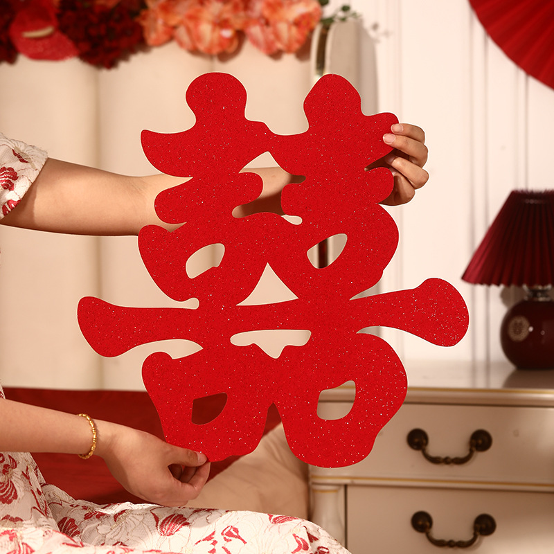 結婚式の必需品、クリエイティブな結婚式の伝統的な赤い紙の対句、新婚の祝福、粘着式ドアステッカー、ウェディングセット
