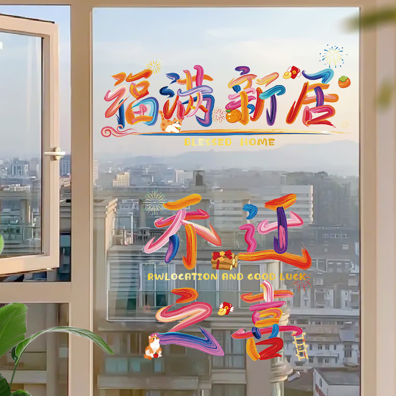 新しい家への引っ越しの喜び、引っ越し、装飾用品、祝福の文字、窓の装飾、2025 カラー静電ガラスステッカー