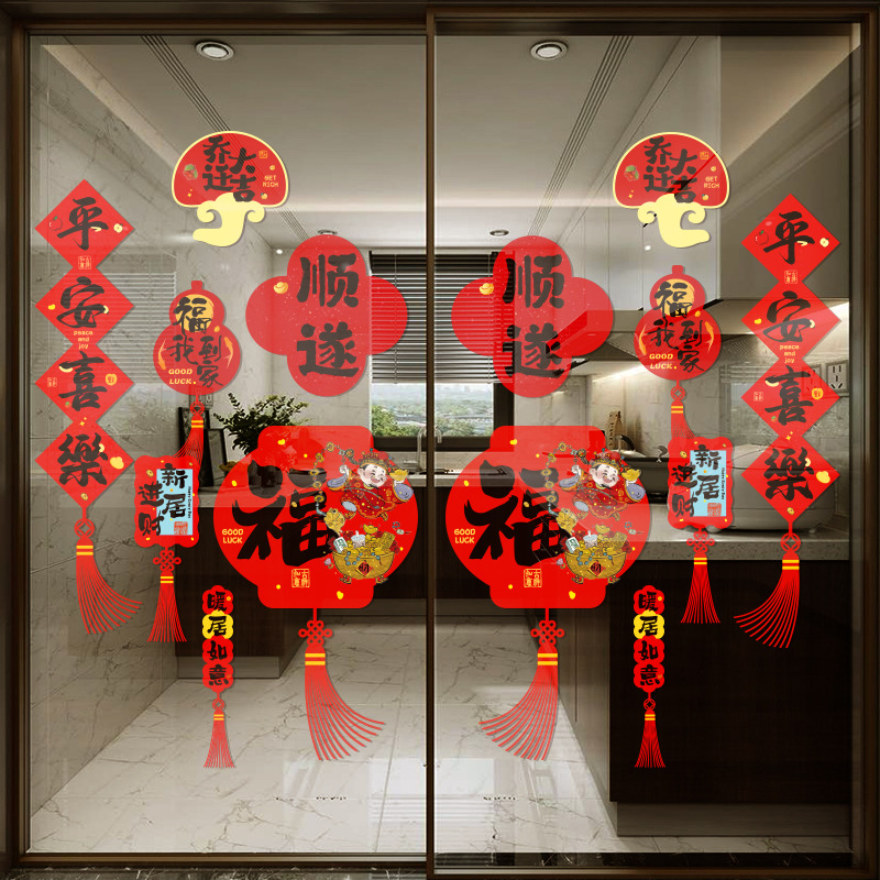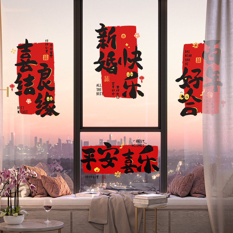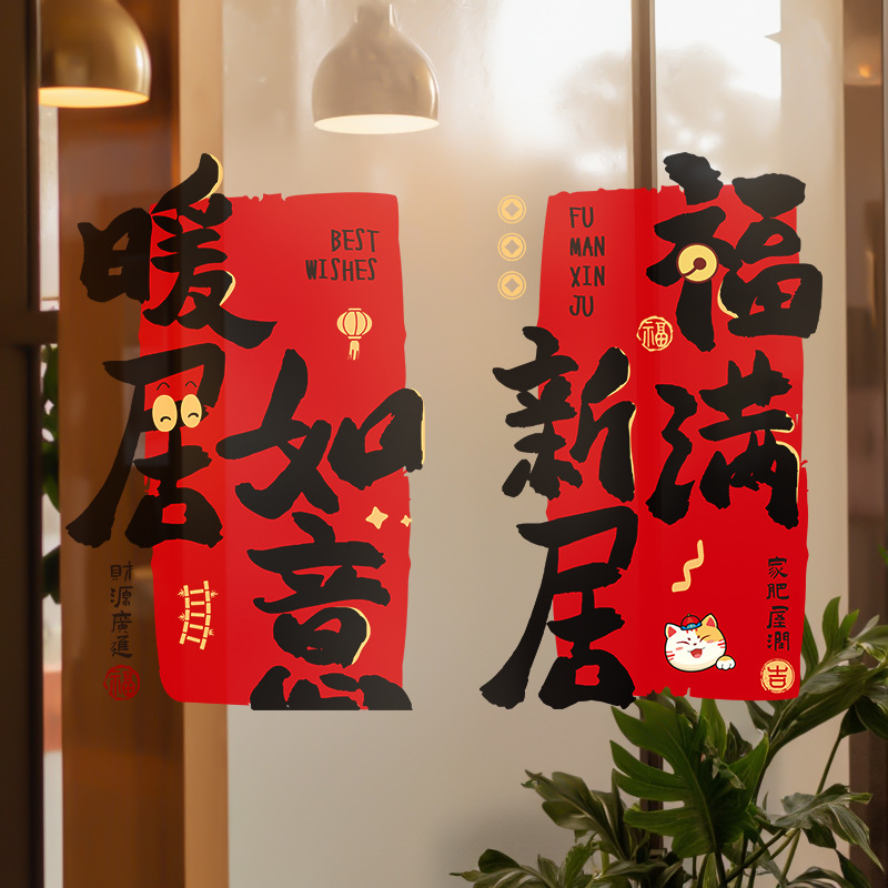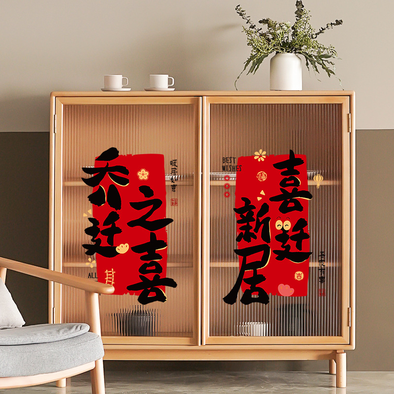 喬迁の喜新居配置装飾ガラス窓花静電貼付入戸ドアシール引越し入宅式用品