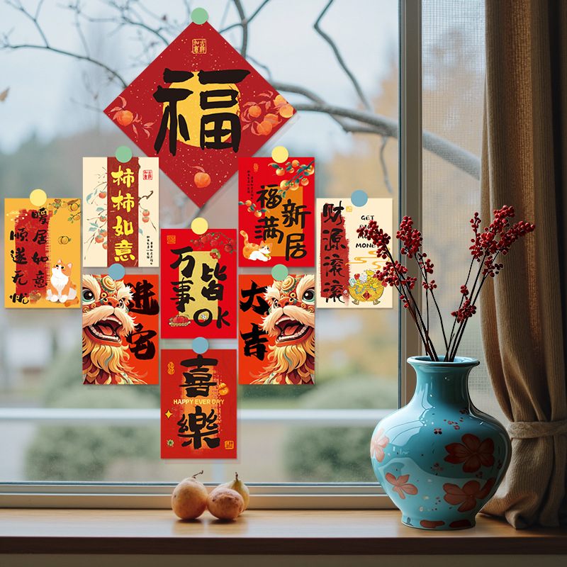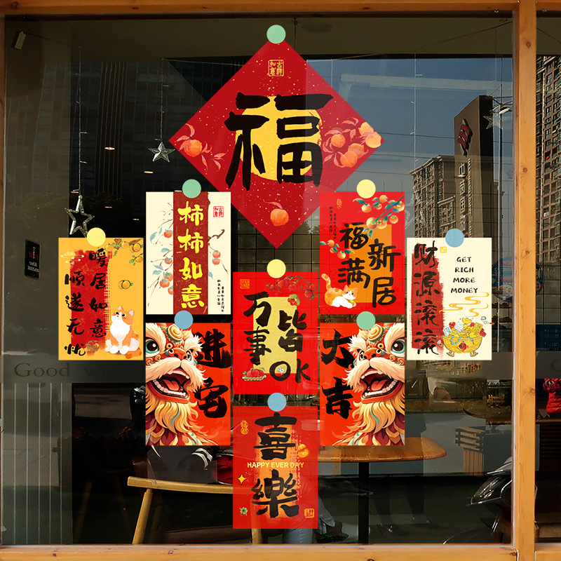 装飾窓飾り 2025年新築祝い 静電ステッカー ガラス窓ステッカー 祝福ステッカー 新年の絵 新居の富の雰囲気