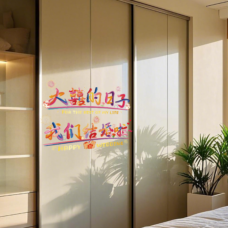 ウェディング用品、ウェディングハッピーワード静電ステッカー、ガラス窓装飾、ウェディングルームデコレーション、ハッピーワードステッカー、ダブルハピネスステッカーセット