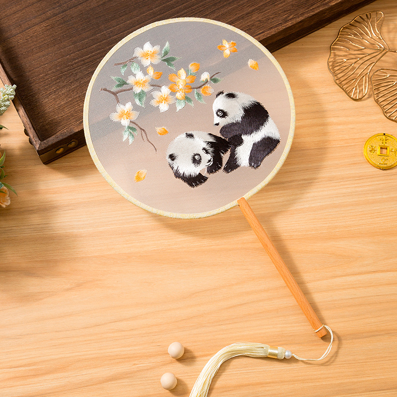新中国式団扇ダンス専用扇子古風児童漢服蘇州蘇刺繍両面刺繍円扇子夏