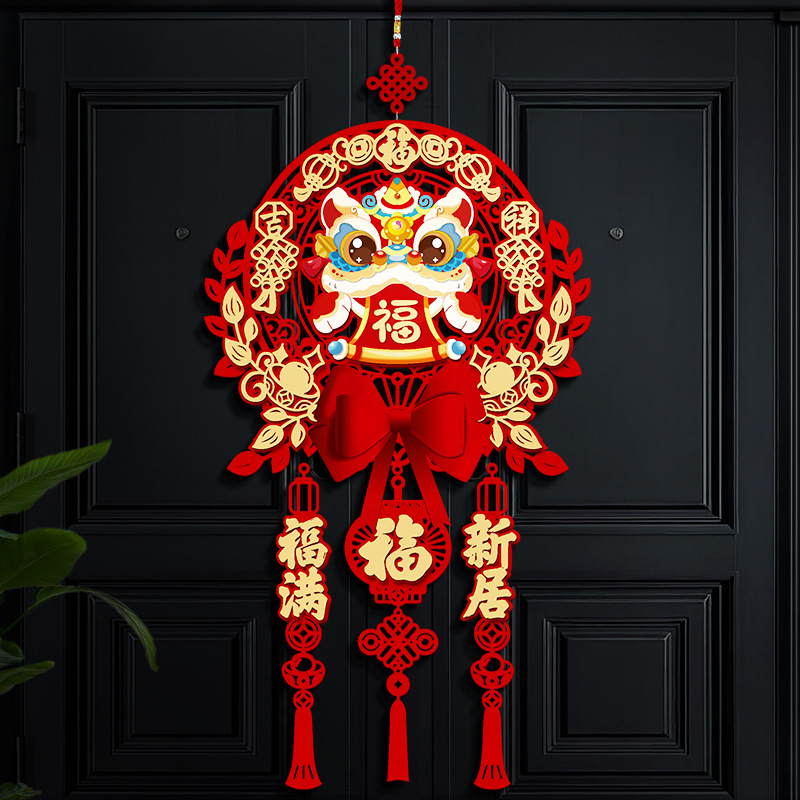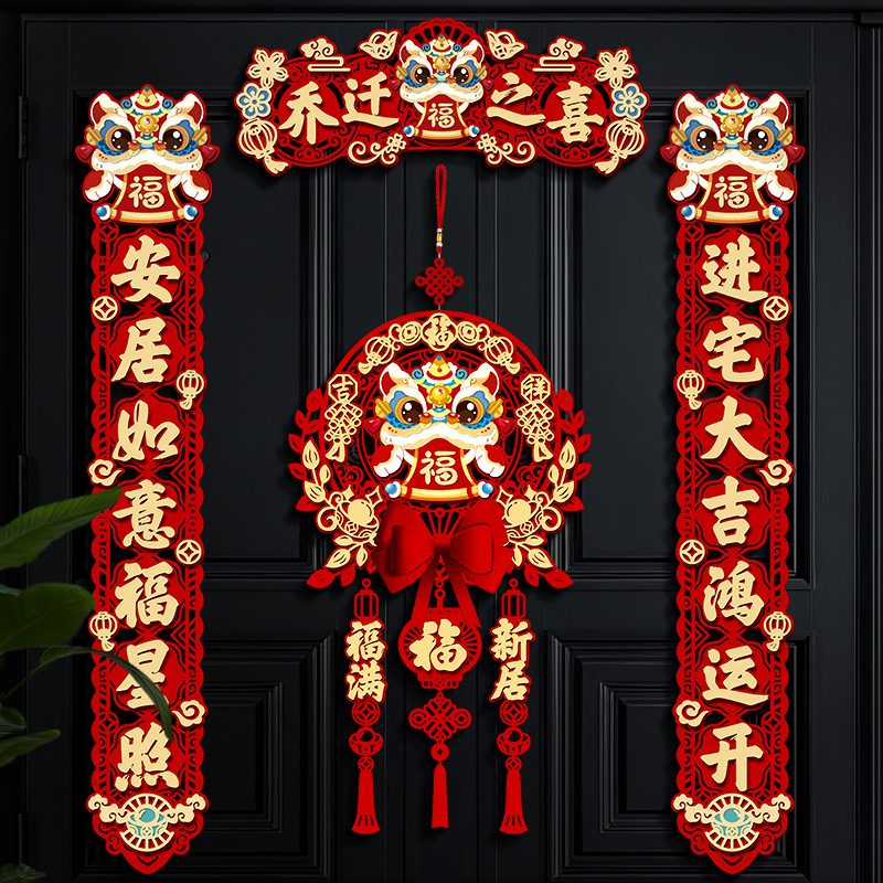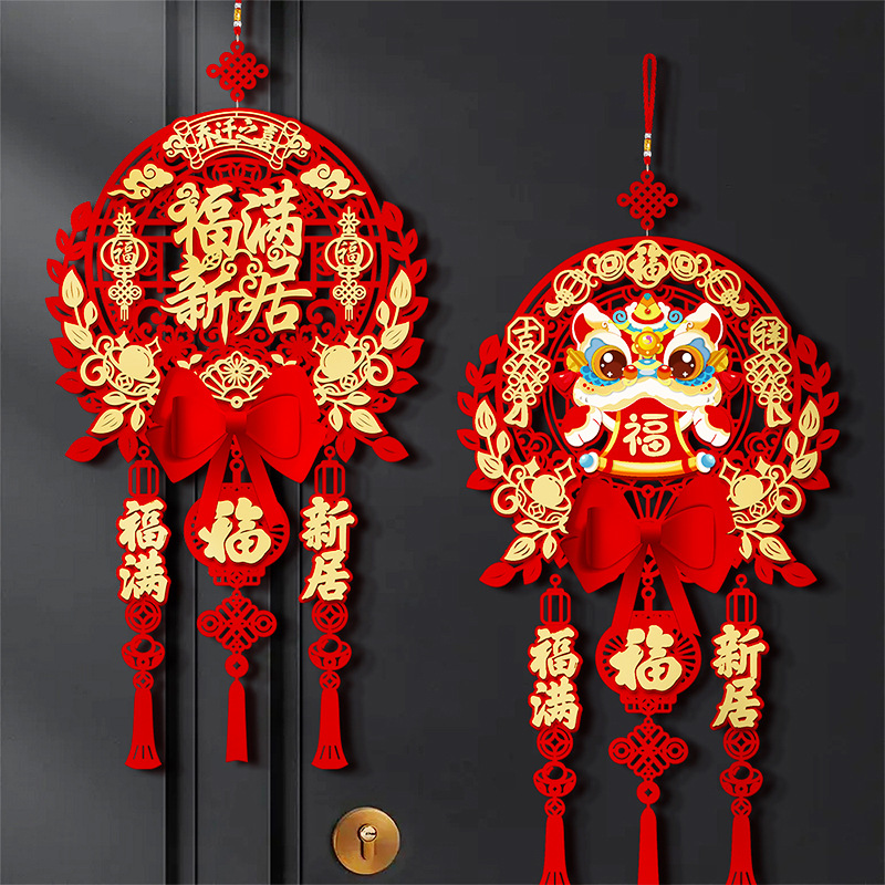 新築祝いの装飾、福の文字の吊り下げ飾り、新居のリビングに飾る福の飾り、新居への引っ越しの門飾り、入宅式の獅子舞