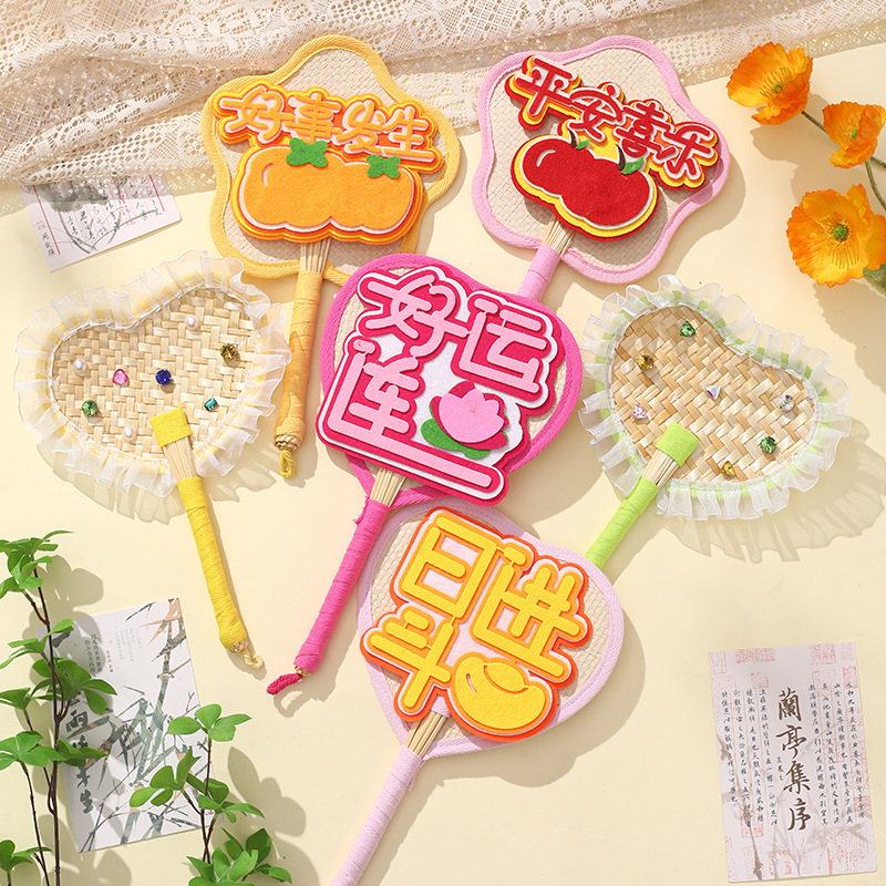 扇子の夏の創意的な文字の蒲扇の旧式な芭蕉の扇子の手作りは家庭の赤ちゃんの女の子の手で麦わらの扇子を揺らします。