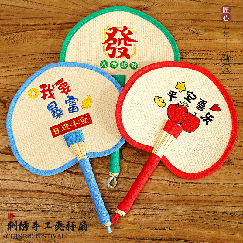 扇子夏昔ながらの大きなガマ扇子子供と赤ちゃん冷却家庭用手回し扇子お金刺繍手織り扇子