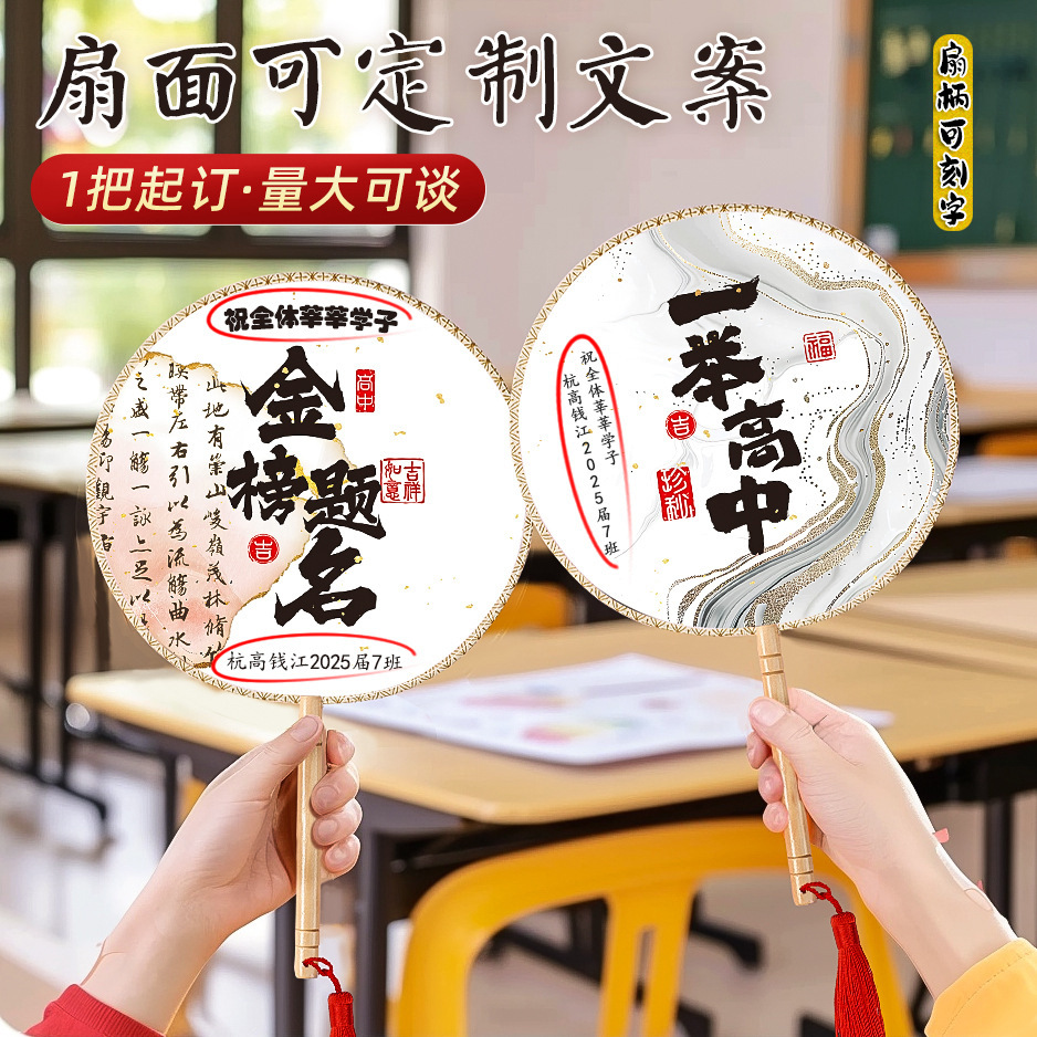 大学入試の団扇の金榜の題名のチャンピオンの扇子の中で国の潮の古風な文字の書道のアイデアの扇子の中国風の円の扇子を試験します。