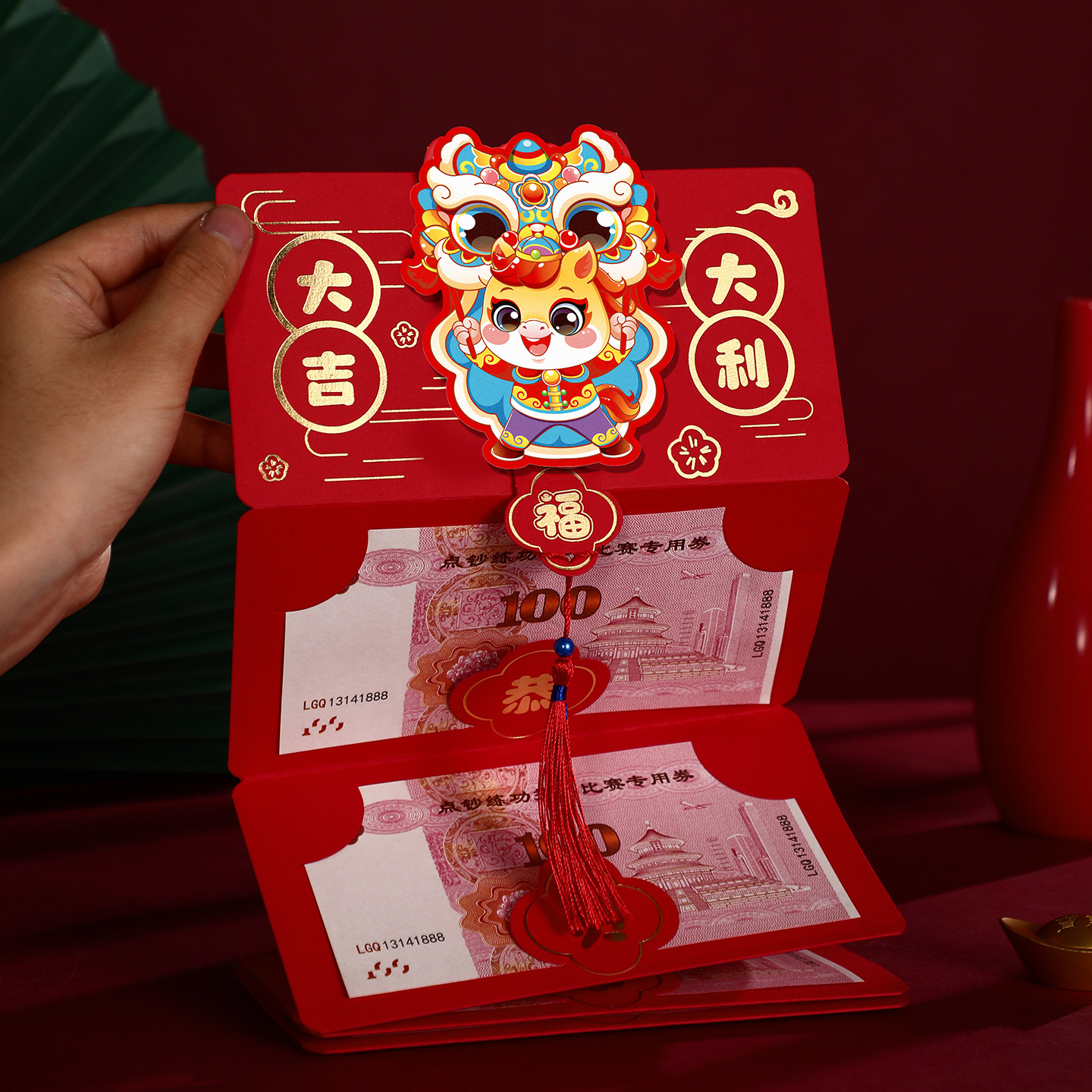 2026年新作折りたたみ式紅包、馬年新年春節カード収納用紅包、漫画風お年玉袋、福袋
