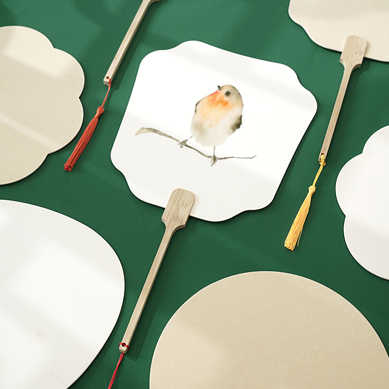 厚手両面宣紙団扇空白紙扇白色漆扇半生熟扇面児童diy手絵画扇子