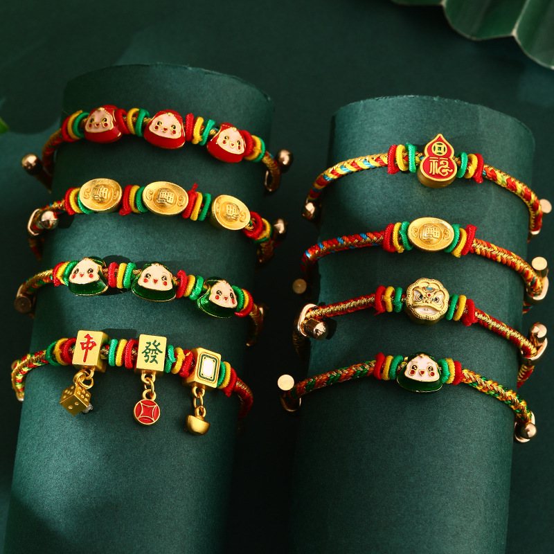 お正月の五色紐ブレスレットDIY手作り春節赤い紐ビーズ五色糸大人子供用ブレスレット新年