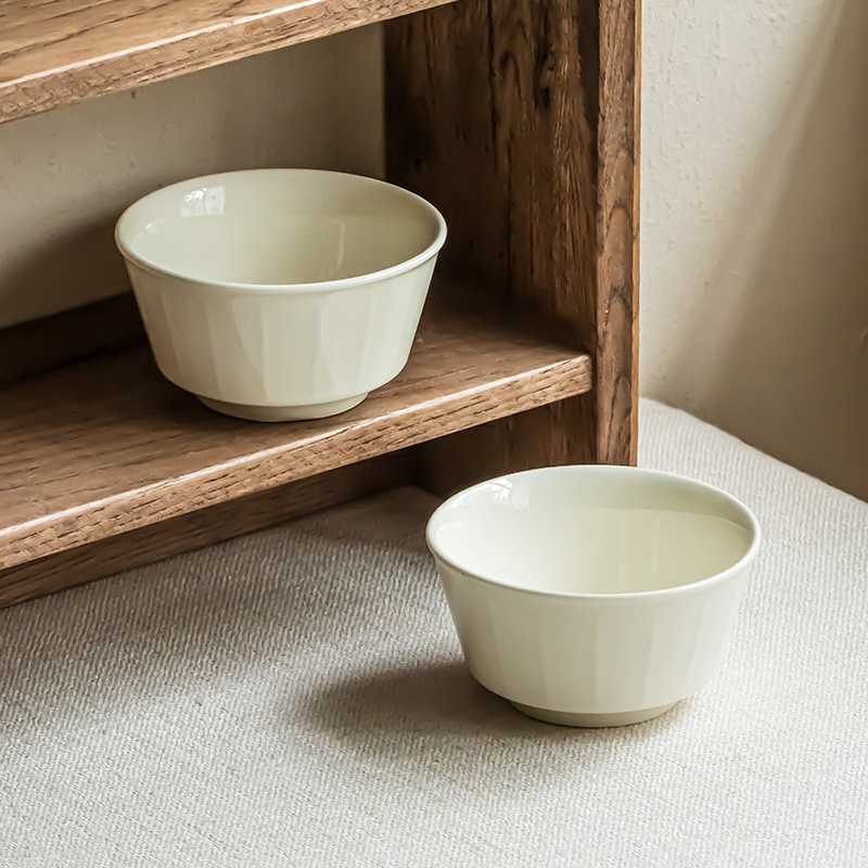 レリーフの縦紋陶磁器のご飯の碗の日本式のシンプルな食器の碗の創意の家庭のご飯の碗の純色の小さい碗のご飯のデザートの碗