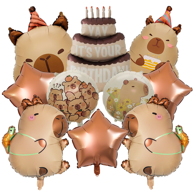国境を越えたマットアルミ膜風船カピバラ水豚風船子供誕生日おめでとうパーティーにおもちゃ風船を配置する
