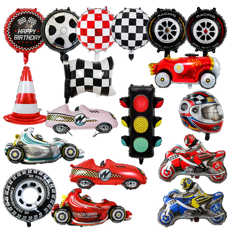 新しいタイヤバルーン 18inch 黒白格子アルミフィルムバルーン レーシングテーマ装飾信号機バルーン卸売