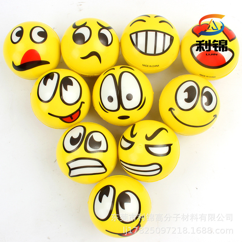 批发海绵发泡笑脸PU球新款黄色表情解压儿童发泄弹力球小玩具