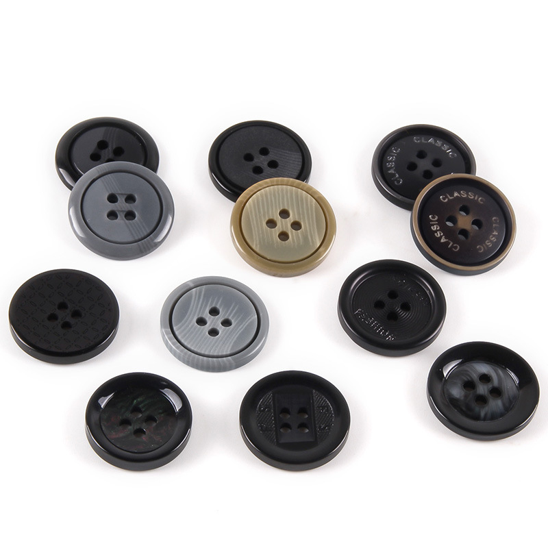 樹脂ファッションカジュアルコート風衣ボタン円形四眼スーツボタン全黒色スーツズボンボタン