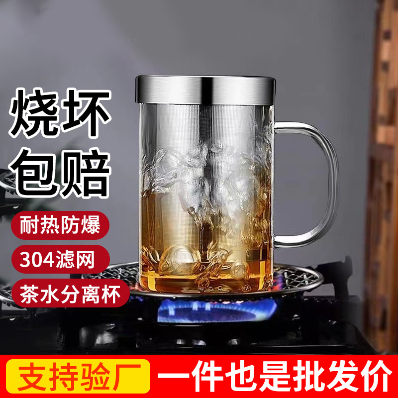 卸売高ホウ素シリコンガラスカップ家庭用オフィス単層ステンレスフィルター透明耐高温花カップ