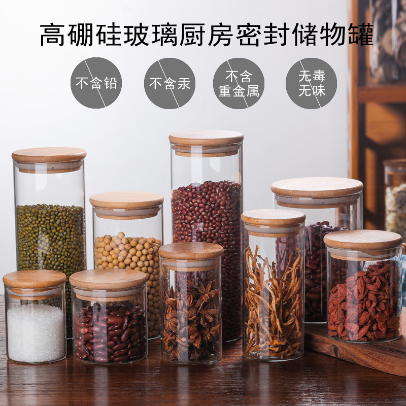 メーカー直供高シリコンホウ素ガラス缶茶葉シリアル食品厨房収納密封缶透明ガラス貯蔵缶
