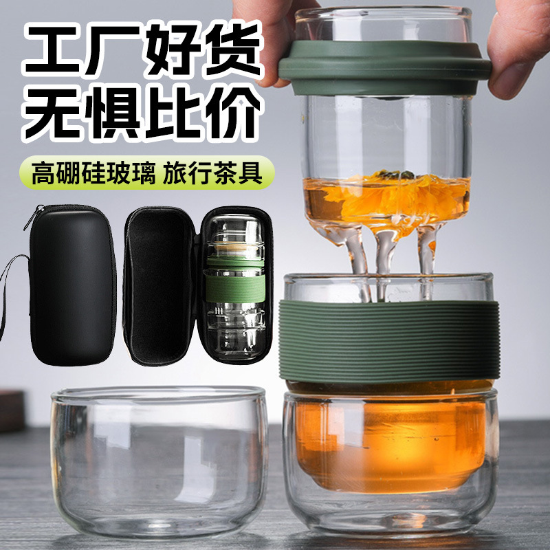卸売高ホウケイ酸ガラスティーカップ 3 カップトラベルカップカンフーティーセット茶水分離カップティーカップ