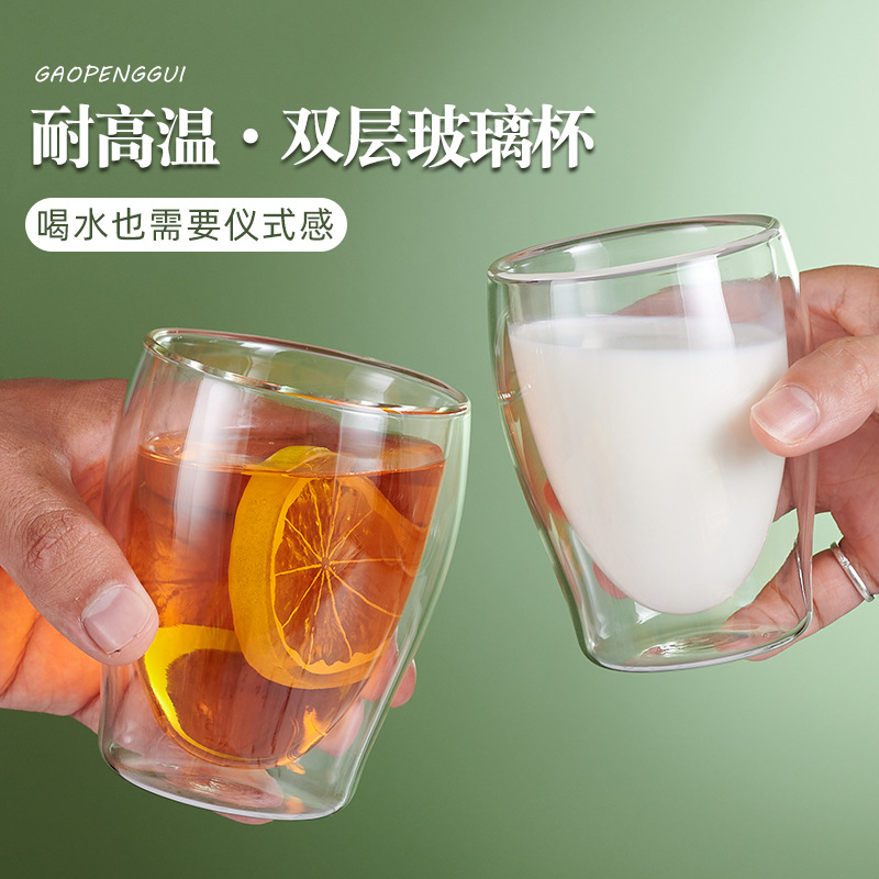 淄博バーベキューキャンプ二重カップ透明ガラスカップ厚い耐高温コーヒーカップ卵型カップ卸売り