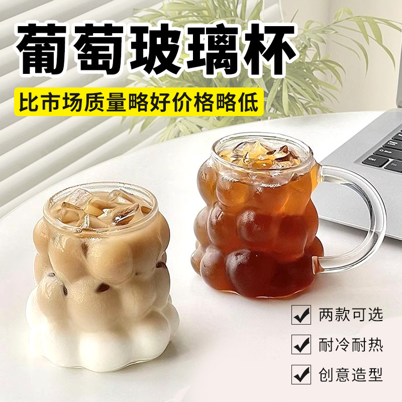 卸売クリエイティブブドウの形のガラス高ホウケイ酸コーヒーカップ家庭用ミルクドリンクカップハンドル付きガラスウォーターカップ