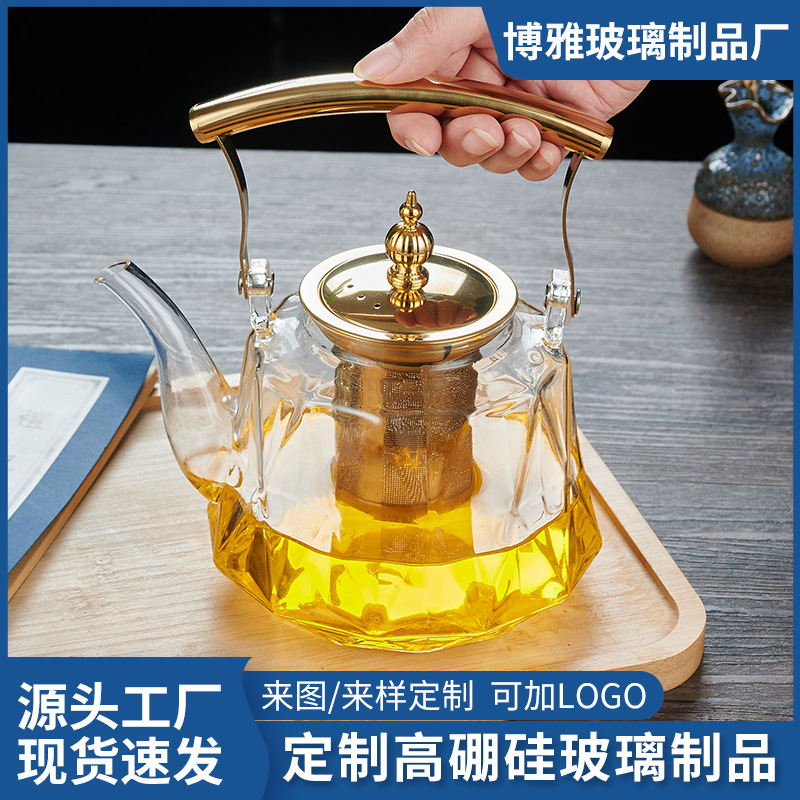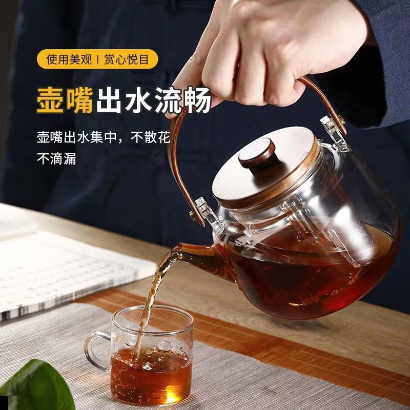 カスタムガラス蒸煮ティーポット厚さ大容量家庭用提梁ポット湯泡ティーポット濾過煮茶器茶器茶器