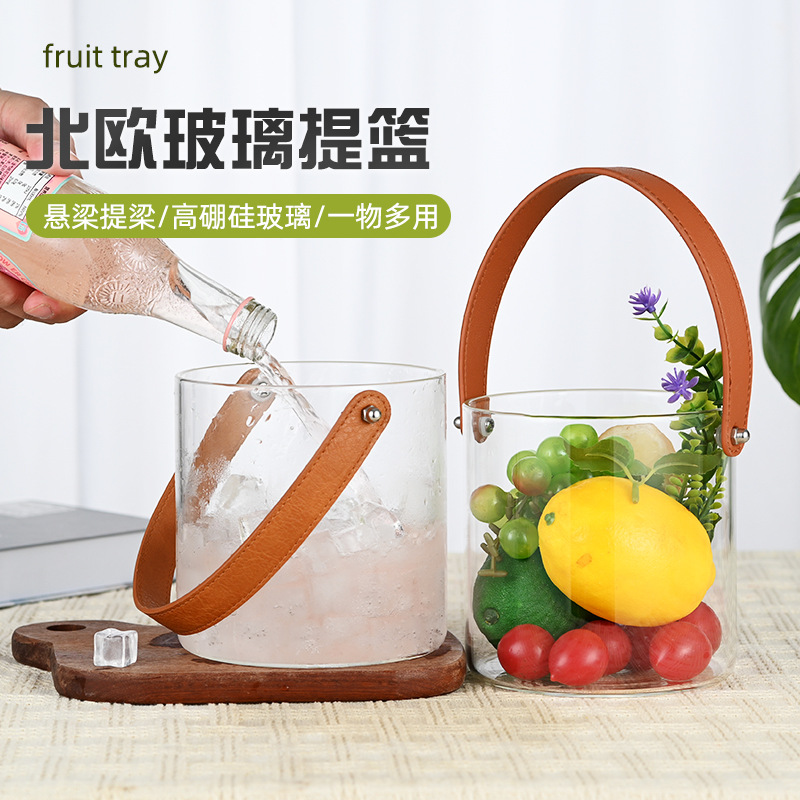 北欧透明手提げフルーツバスケット家庭用ガラス贮水桶冷えコーラビール高颜値ピクニック手提げバスケット
