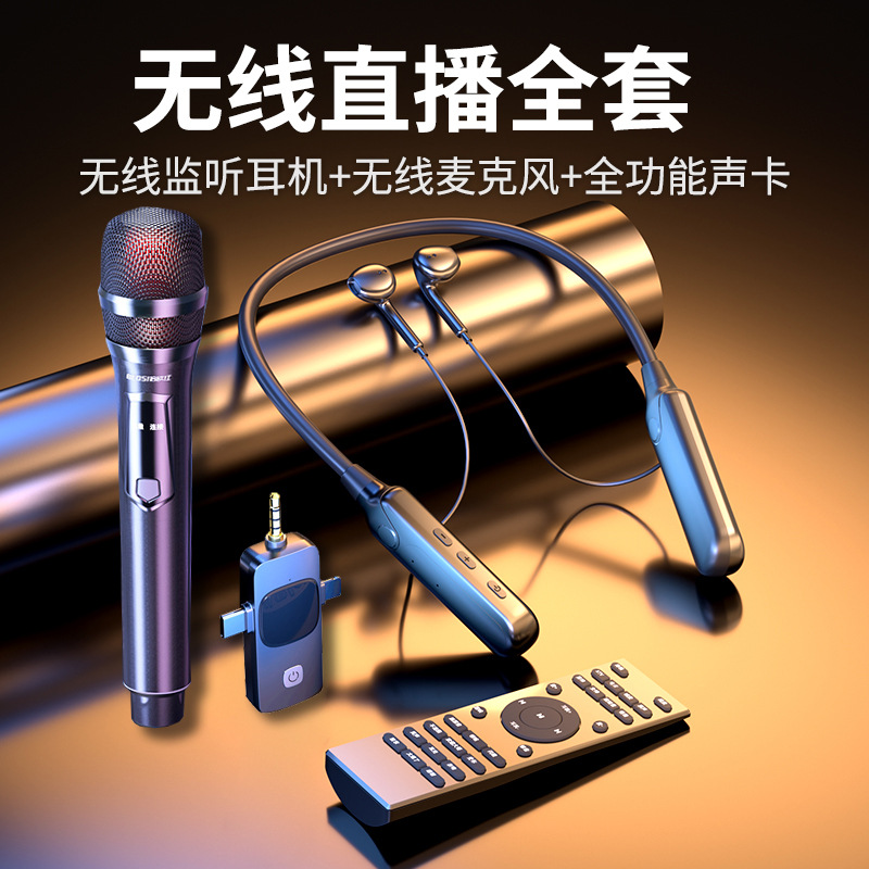 携帯電話ワイヤレスマイクライブブロードキャストBluetoothサウンドカードヘッドセットオールインワン屋外アンカーモニタリング歌マイクユニバーサル