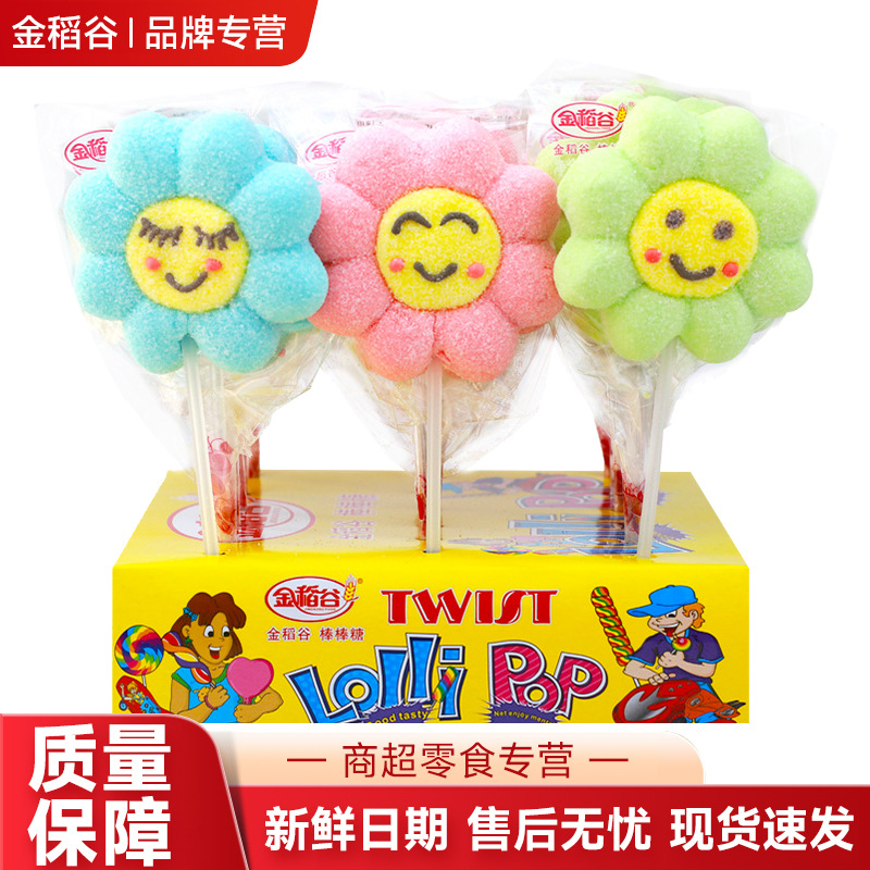 金稲谷35g太陽花マシュマロ花ロリポップ創意子供用おやつ箱入りキャンディースーパー卸売り