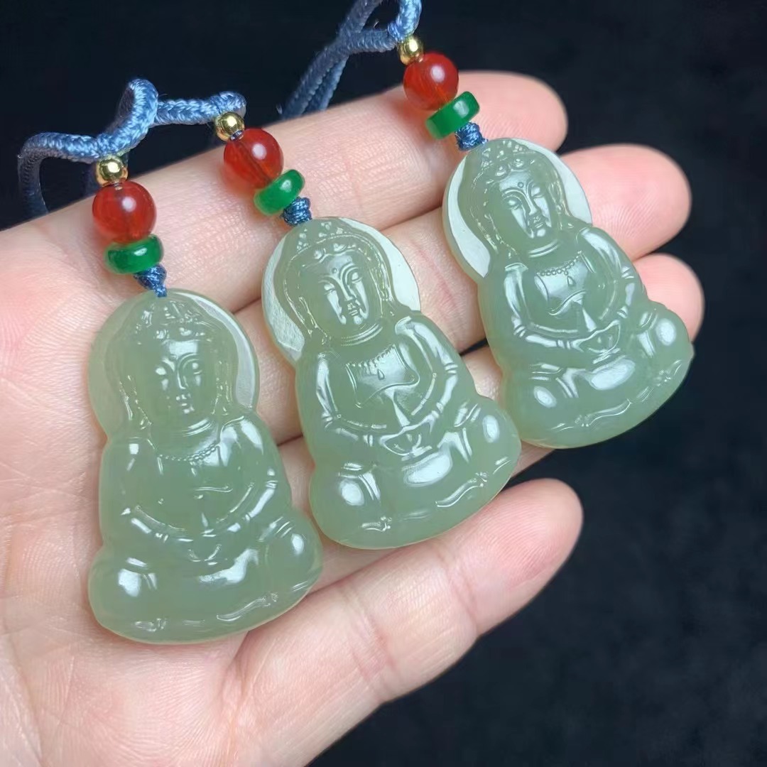 池ジュエリー天然和田玉彫刻観音ペンダント青海材料晴水色生放送一括コピー標品