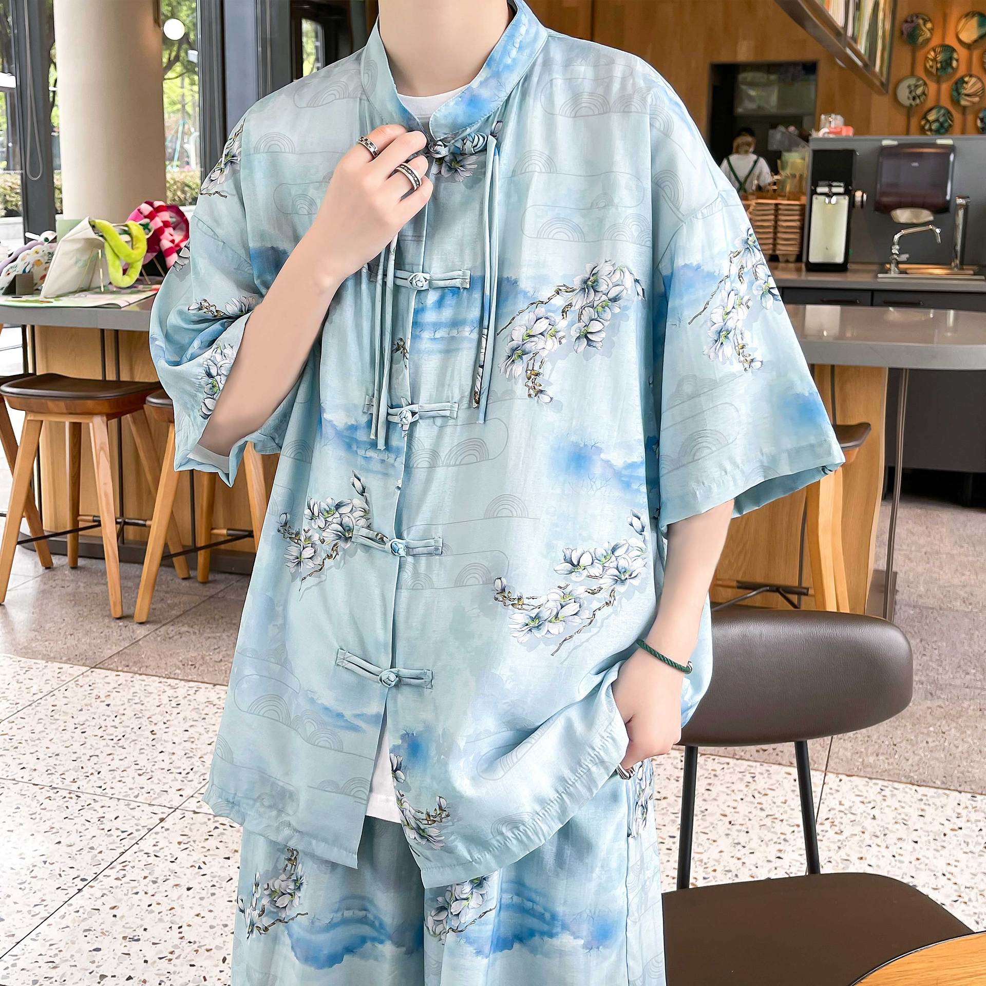 起爆夏新中国風シャツセット国風ゆったり版スーツTZ5188-P60