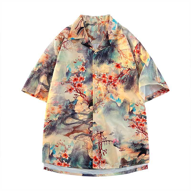 価格をコントロールする59爆発的な花シャツ水墨プリント国風シャツ多色ゆるい半袖シャツcs891p35