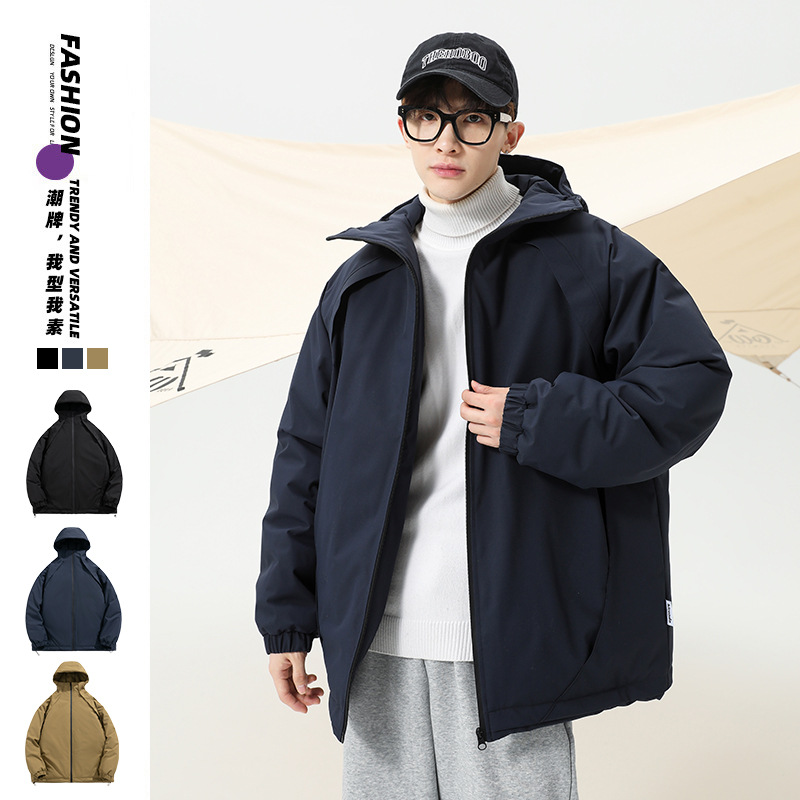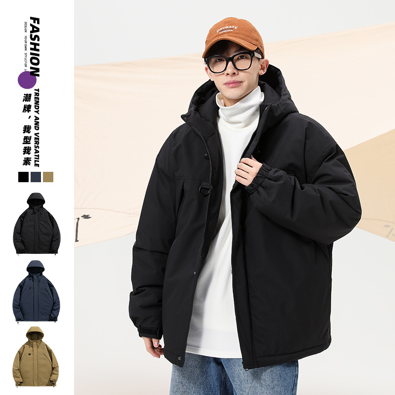 2022秋の新型男性フード付きゆるいファッションカジュアル保温トレンド綿入れコート8197-p100