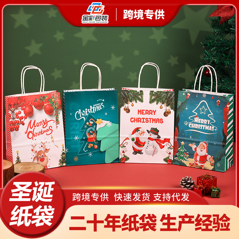 クリスマスギフトバッグ手提げ高级感ギフトバッグ高级感insクラフトクリスマス手提げ纸袋カスタム