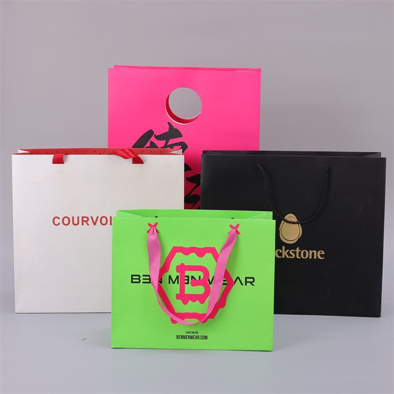 カスタマイズされたクラフト紙袋ハンドバッグカラフルな包装袋プリントロゴギフト衣料品店ショッピング厚みのある包装紙袋