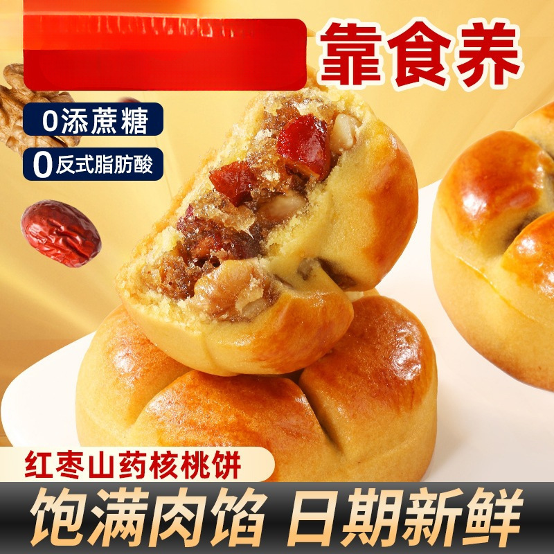 ナツメの山薬のクルミの餅は砂糖の粗食の栄養の菓子の朝食のネットの赤い軽食を加えていません。