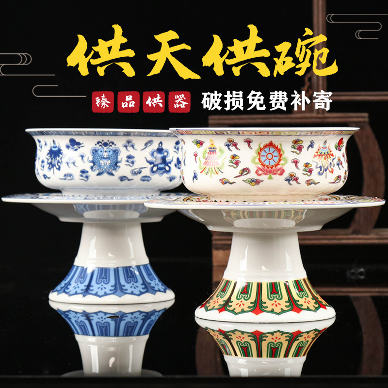 天供碗陶磁器彩色絵貢碗大サイズ福禄寿供斎碗メレンゲ碗斎天供仏碗