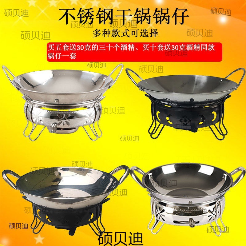 アルコールストーブのホテルの小さい鍋のフルセットのステンレスの乾燥ボイラーの固体の液体のアルコールの鍋の子の家庭用の屋外の乾燥鍋