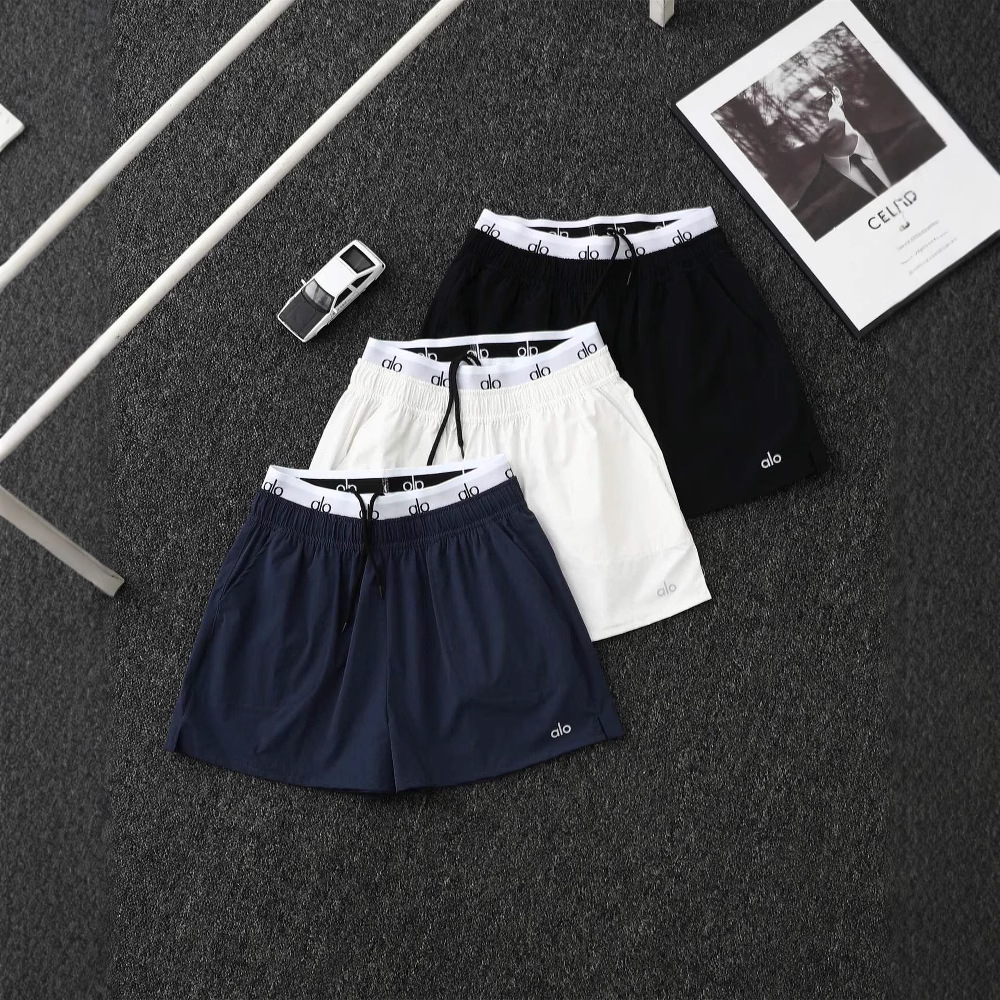 2025 夏の新ヨーロッパとアメリカンスタイル alo ウエストロゴレディースショーツスポーツレジャー速乾性ショーツ女性卸売