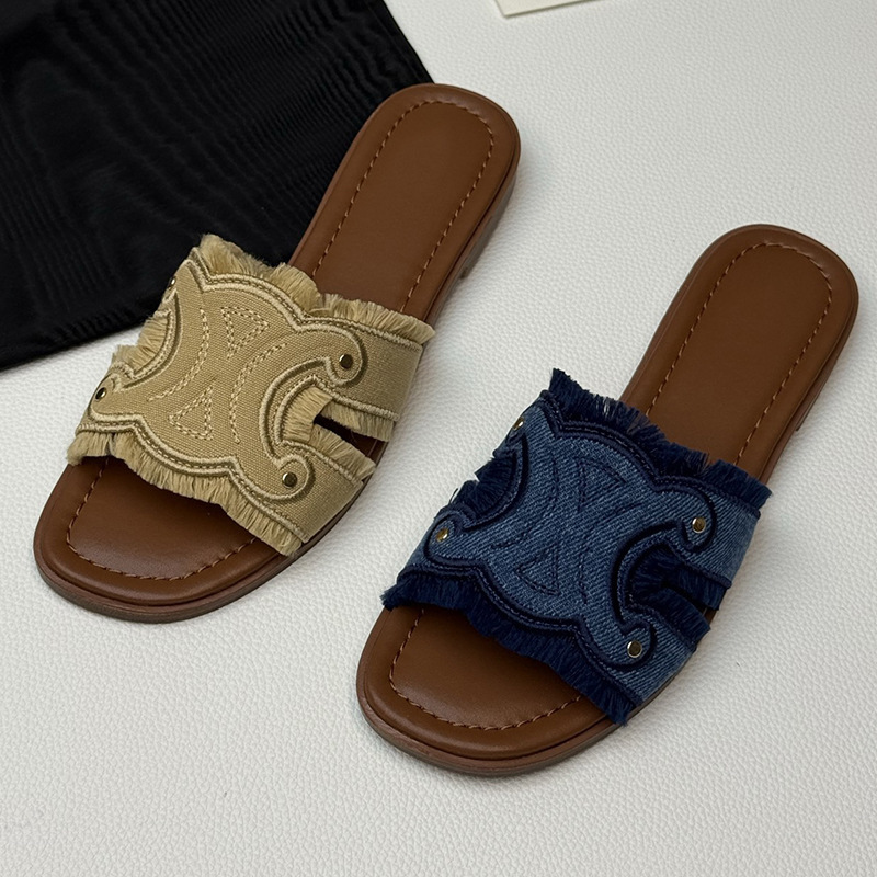 万能英国風本革ワンラインスリッパサンダル高級牛革2025ニッチフラット春夏凱旋門
